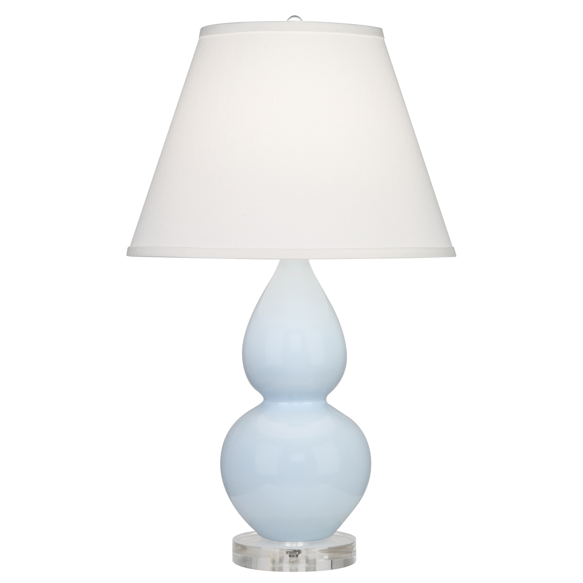 Baby Blue Glazed Ceramic With Lucite Base Small Double Gourd Accent Lamp With Pearl Dupioni Fabric Shade - Our Double Gourd collection features a simple but gracefully curving silhouette. Available in a wide array of vibrant colors and several different base finishes.