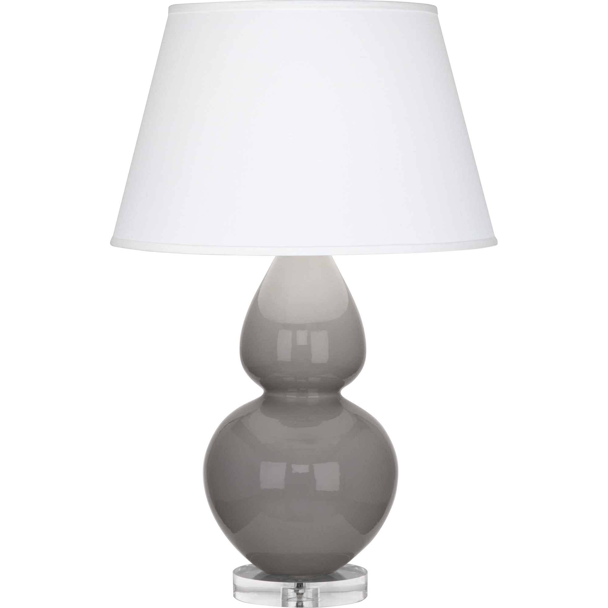 Smokey Taupe Glazed Ceramic With Lucite Base Double Gourd Table Lamp With Pearl Dupioni Fabric Shade - Our Double Gourd collection features a simple but gracefully curving silhouette. Available in a wide array of vibrant colors and several different base finishes.