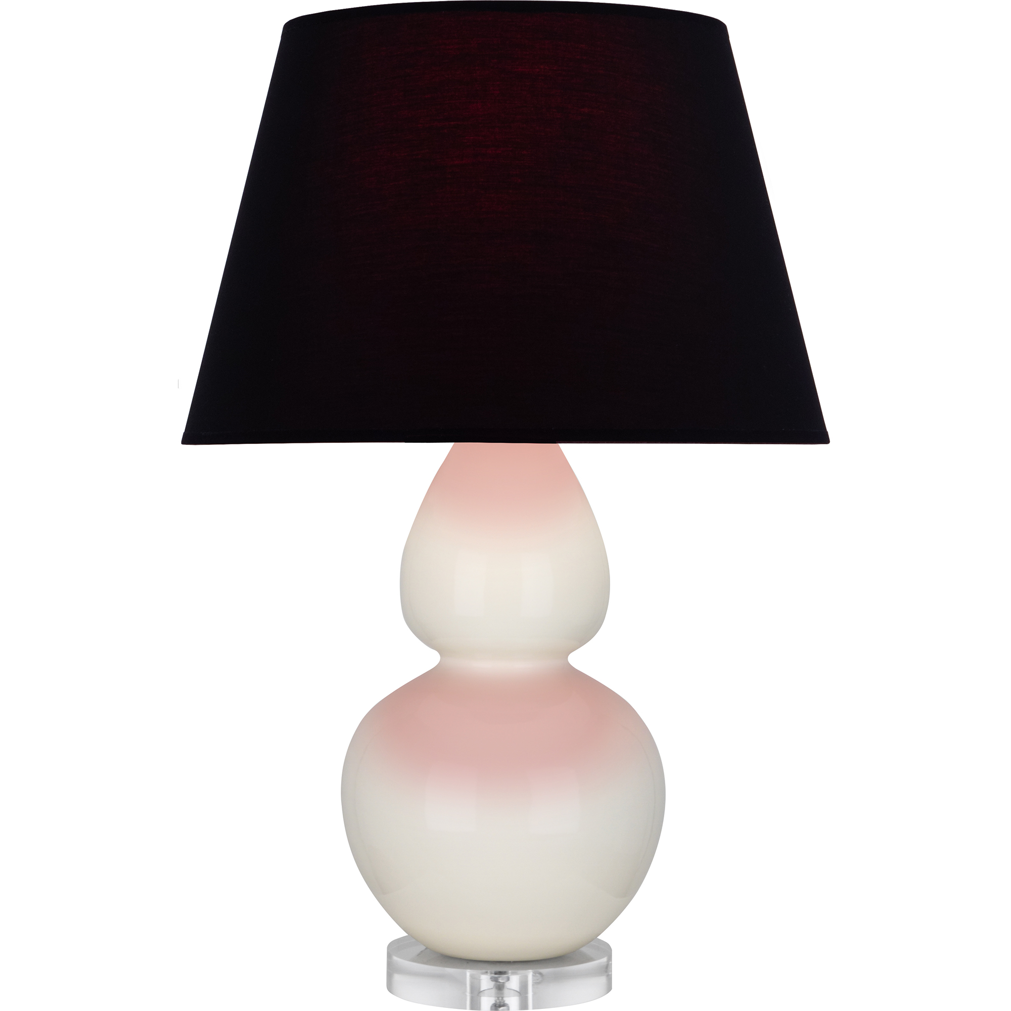 Bone Glazed Ceramic With Lucite Base Double Gourd Table Lamp With Ink Black Fabric Shade with Rose Red Lining - Our Double Gourd collection features a simple but gracefully curving silhouette. Available in a wide array of vibrant colors and several different base finishes.