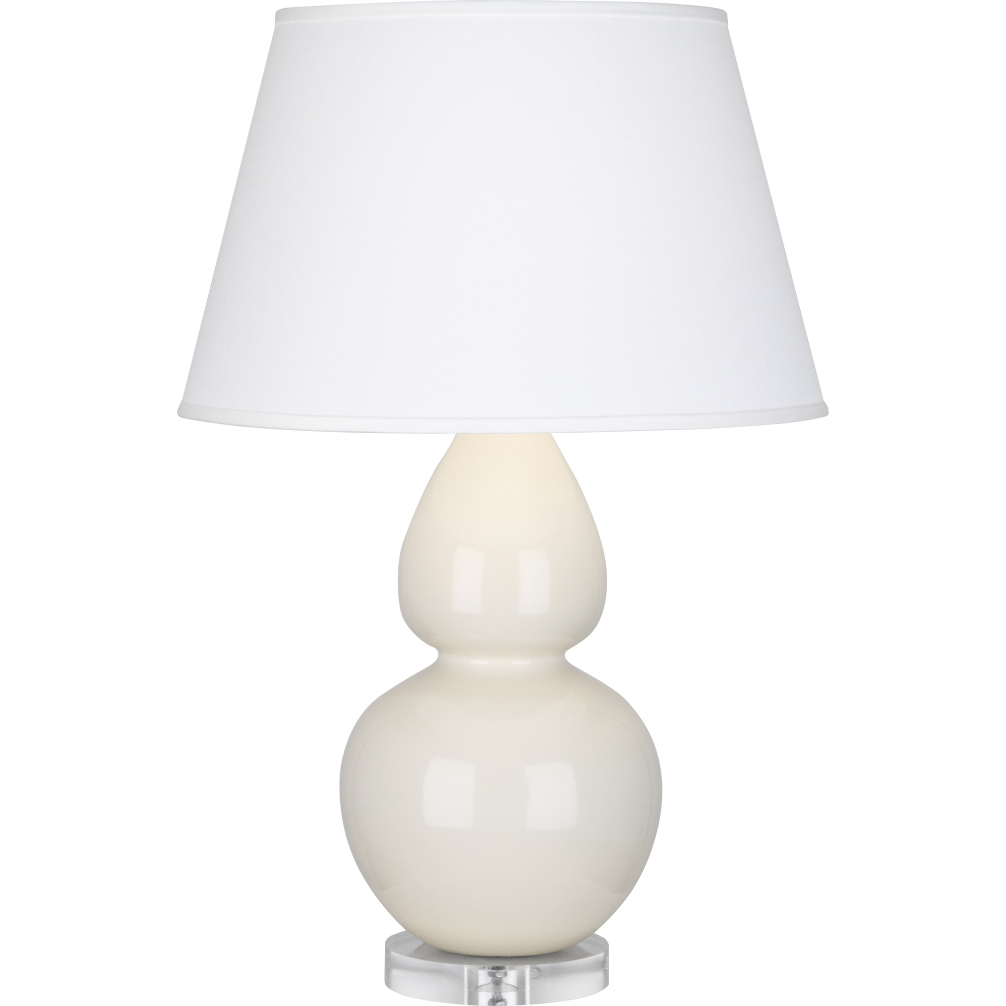 Bone Glazed Ceramic With Lucite Base Double Gourd Table Lamp With Pearl Dupioni Fabric Shade - Our Double Gourd collection features a simple but gracefully curving silhouette. Available in a wide array of vibrant colors and several different base finishes.