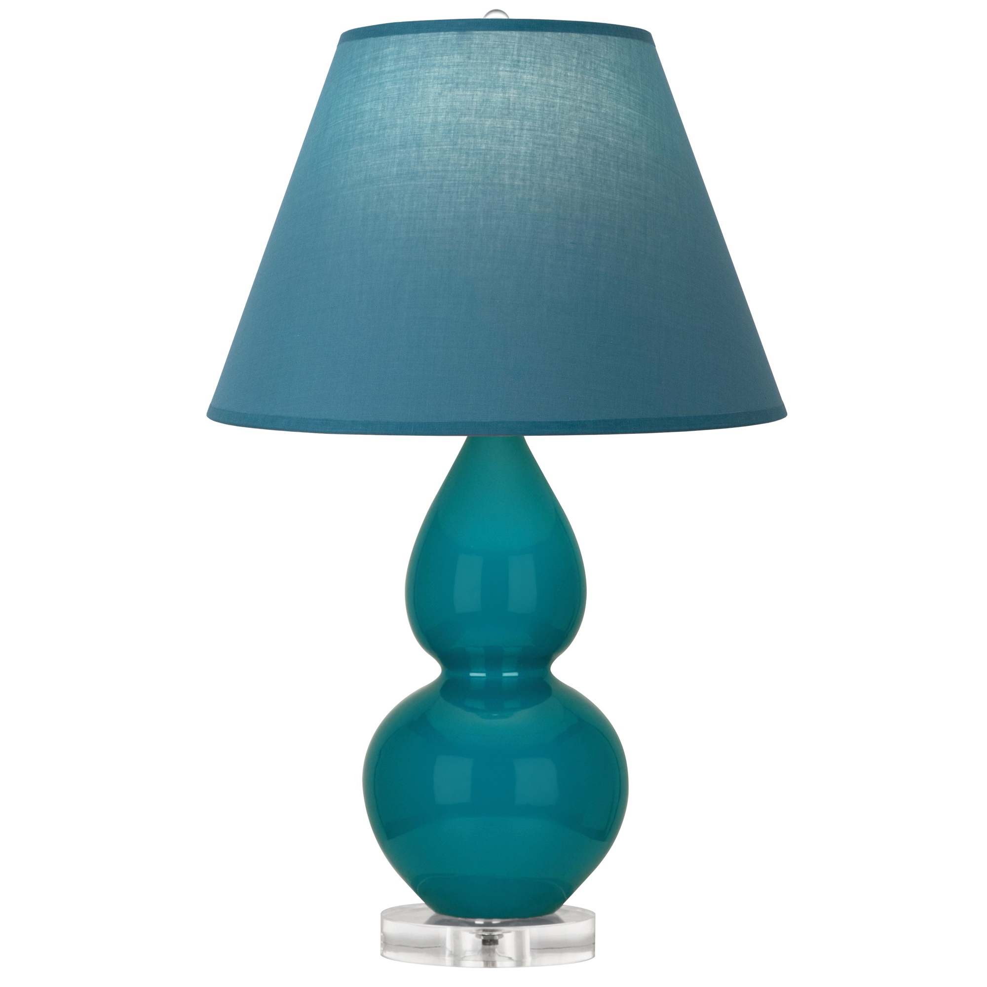 Peacock Glazed Ceramic With Lucite Base Small Double Gourd Accent Lamp With Bright Blue Fabric Shade with Gray Lining - Our Double Gourd collection features a simple but gracefully curving silhouette. Available in a wide array of vibrant colors and several different base finishes.