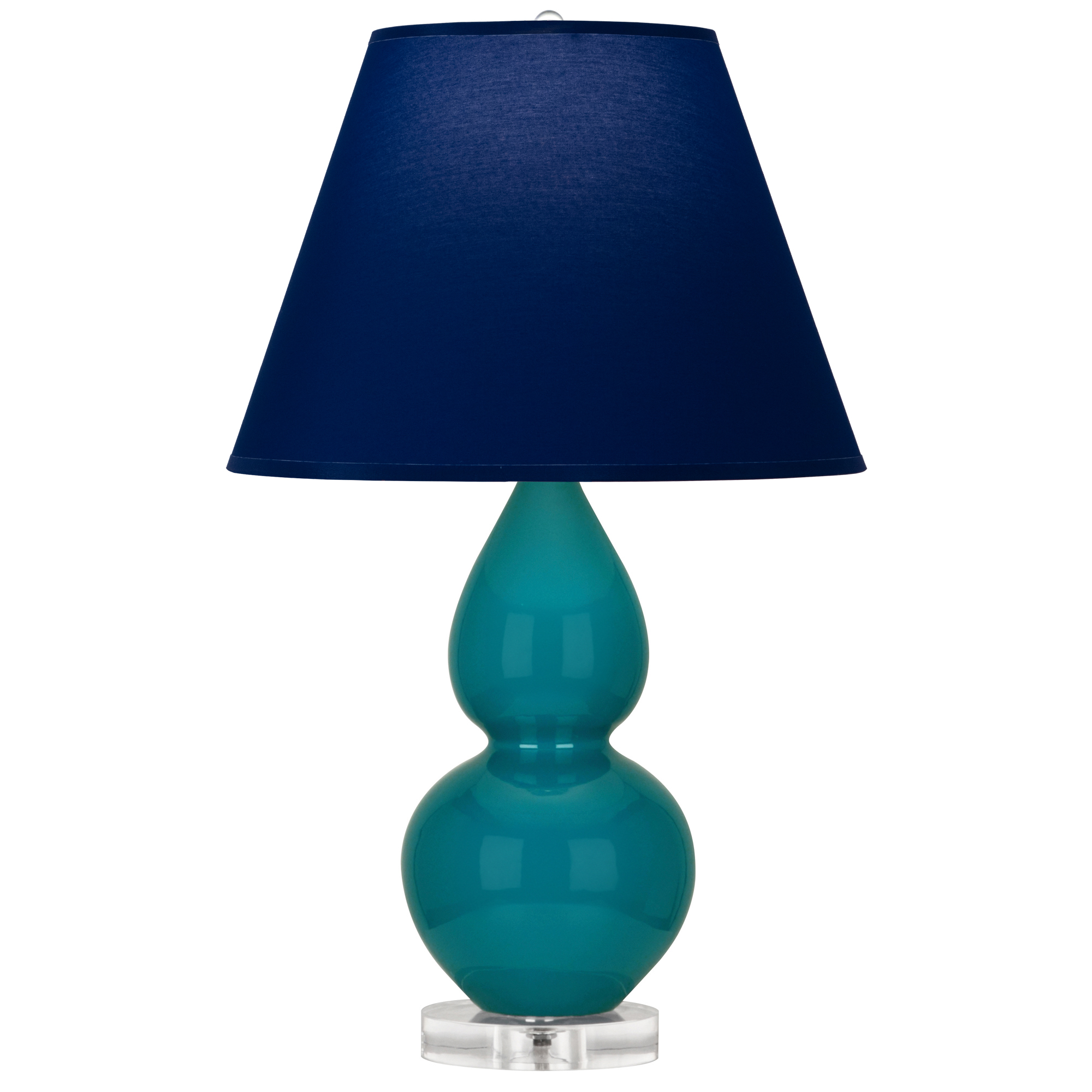 Peacock Glazed Ceramic With Lucite Base Small Double Gourd Accent Lamp With Navy Fabric Shade with Gray Lining - Our Double Gourd collection features a simple but gracefully curving silhouette. Available in a wide array of vibrant colors and several different base finishes.