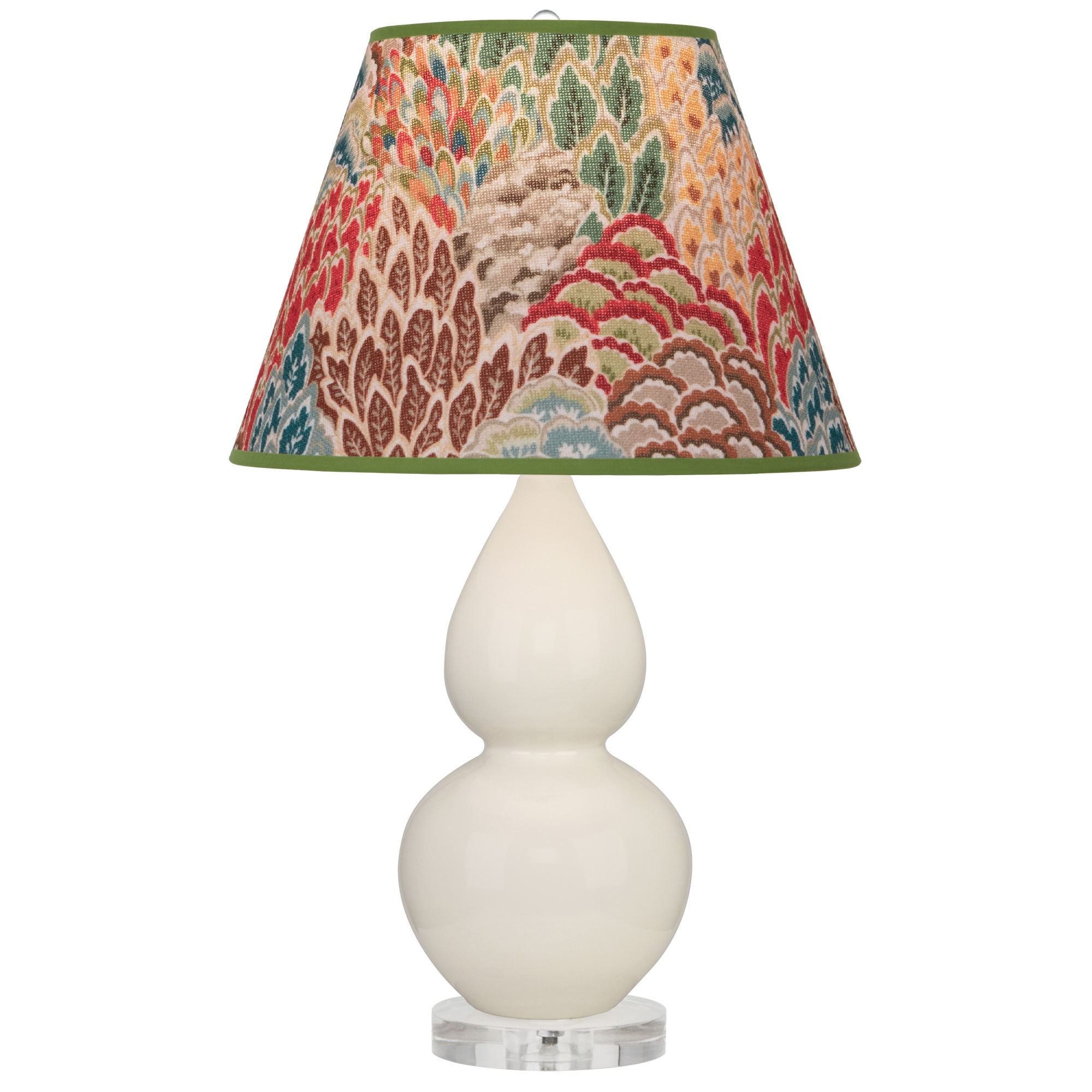 Bone Glazed Ceramic With Lucite Base Small Double Gourd Accent Lamp With Fall Floral Fabric Shade - Our Double Gourd collection features a simple but gracefully curving silhouette. Available in a wide array of vibrant colors and several different base finishes.