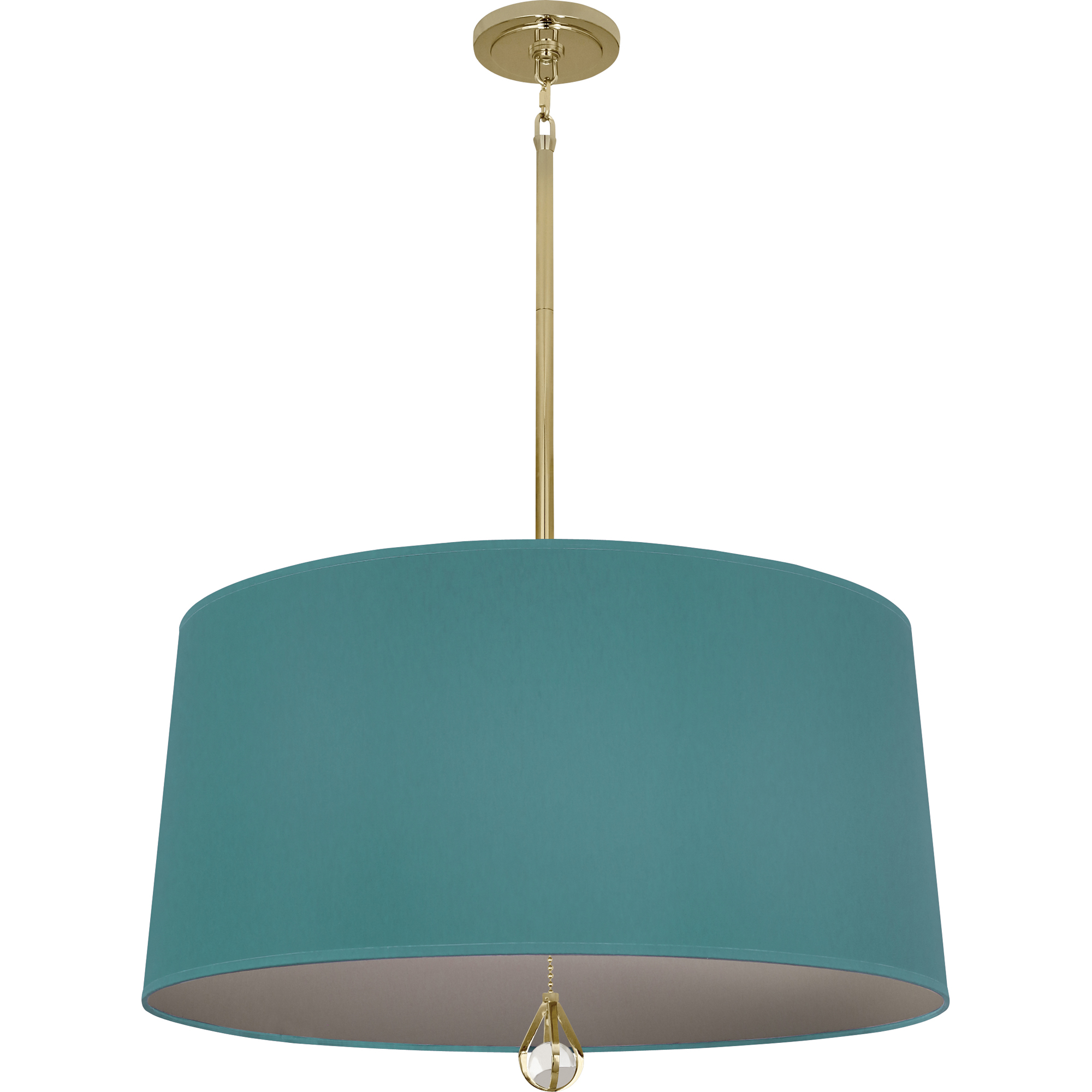 Modern Brass Williamsburg Custis Pendant With Mayo Teal Fabric Shade with Carter Gray Lining