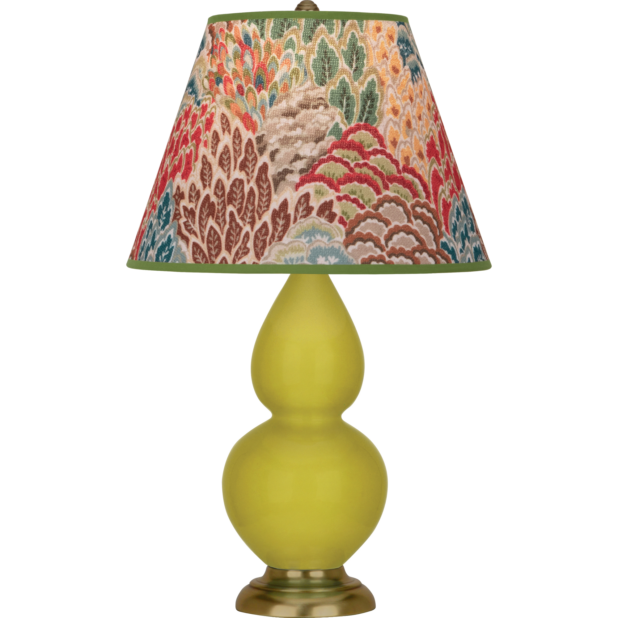 Citron Glazed Ceramic With Antique Brass Finished Accents Small Double Gourd Accent Lamp With Fall Floral Fabric Shade - Our Double Gourd collection features a simple but gracefully curving silhouette. Available in a wide array of vibrant colors and several different base finishes.