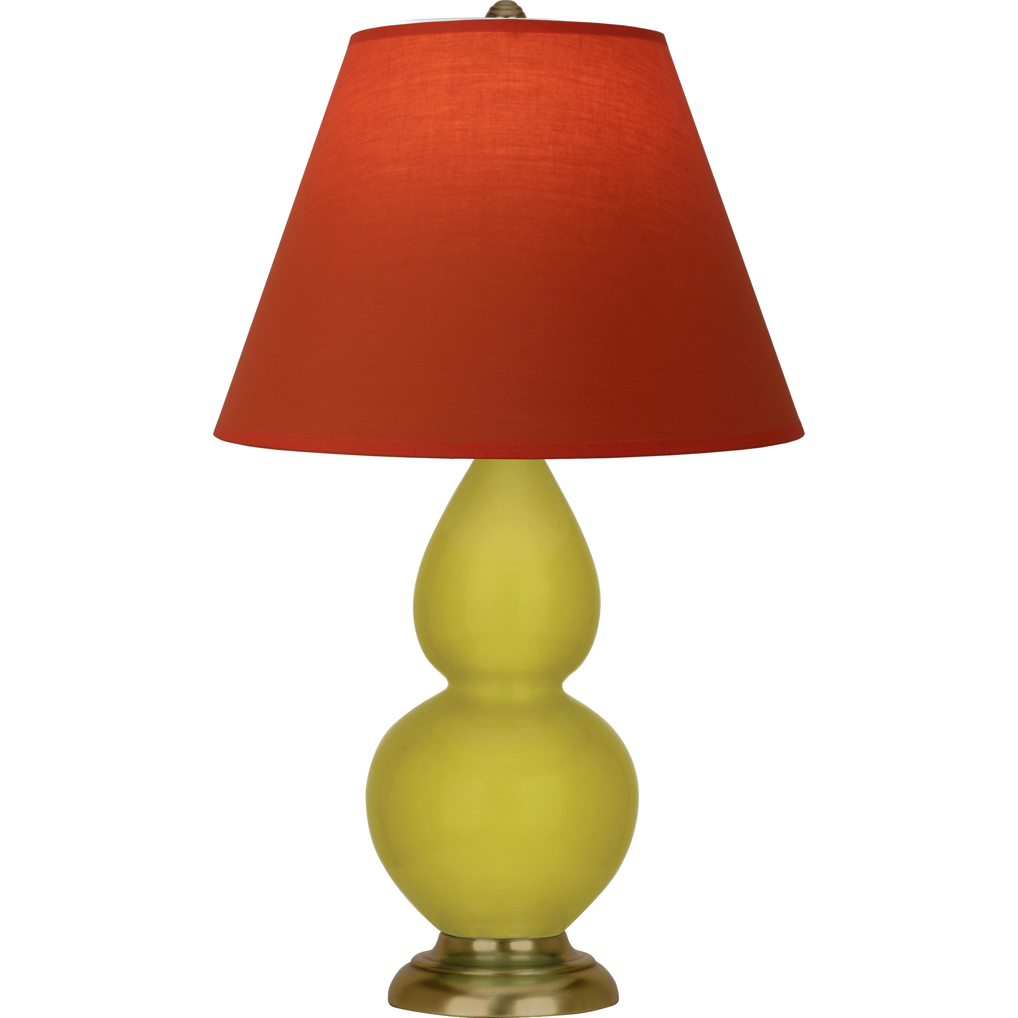 Citron Glazed Ceramic With Antique Natural Brass Finished Accents With Tangerine w/ Taupe Lining Fabric Shade - Our Double Gourd collection features a simple but gracefully curving silhouette. Available in a wide array of vibrant colors and several different base finishes.