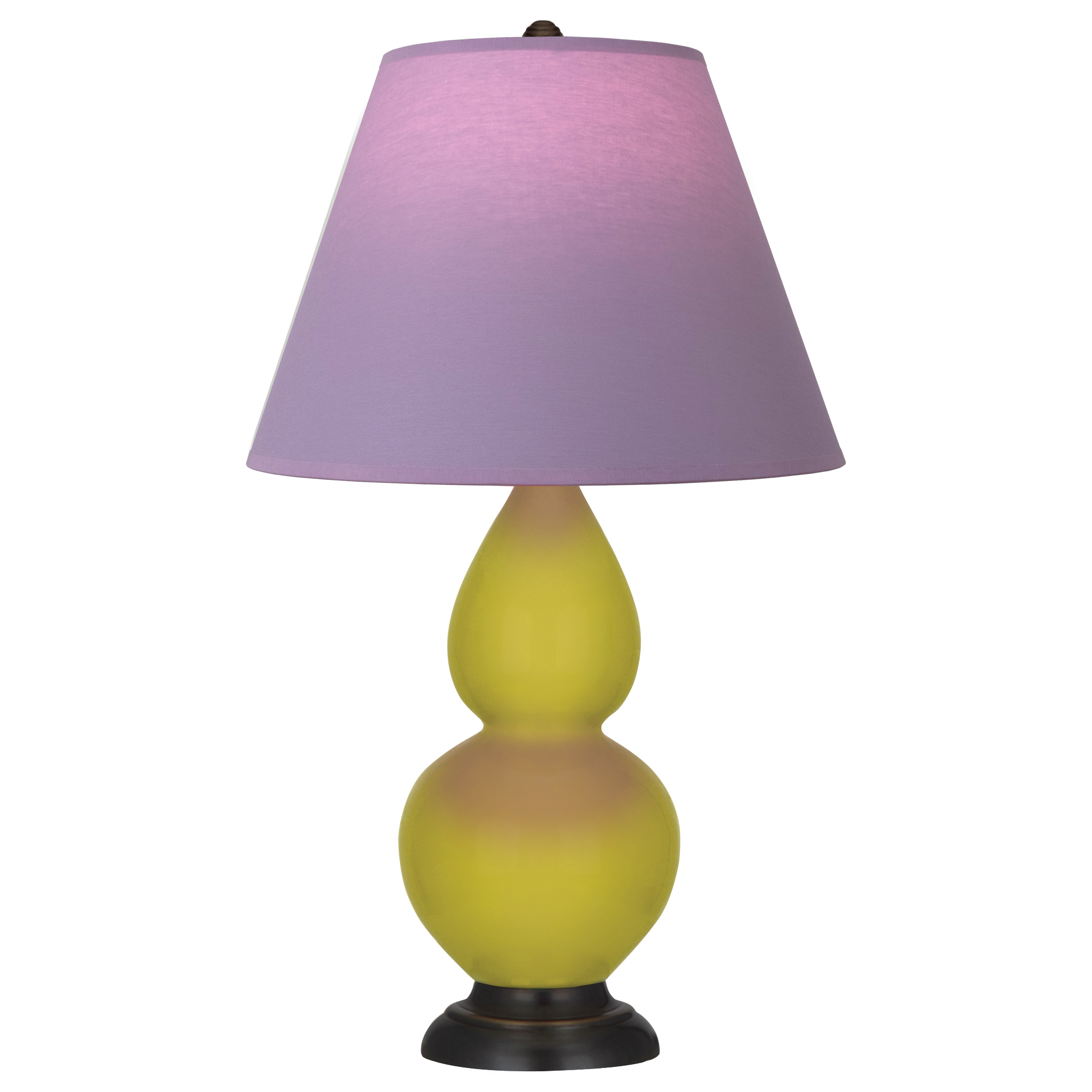 Citron Glazed Ceramic With Deep Patina Bronze Finished Accents Small Double Gourd Accent Lamp With Lavender Fabric Shade with Plum Lining - Our Double Gourd collection features a simple but gracefully curving silhouette. Available in a wide array of vibrant colors and several different base finishes.