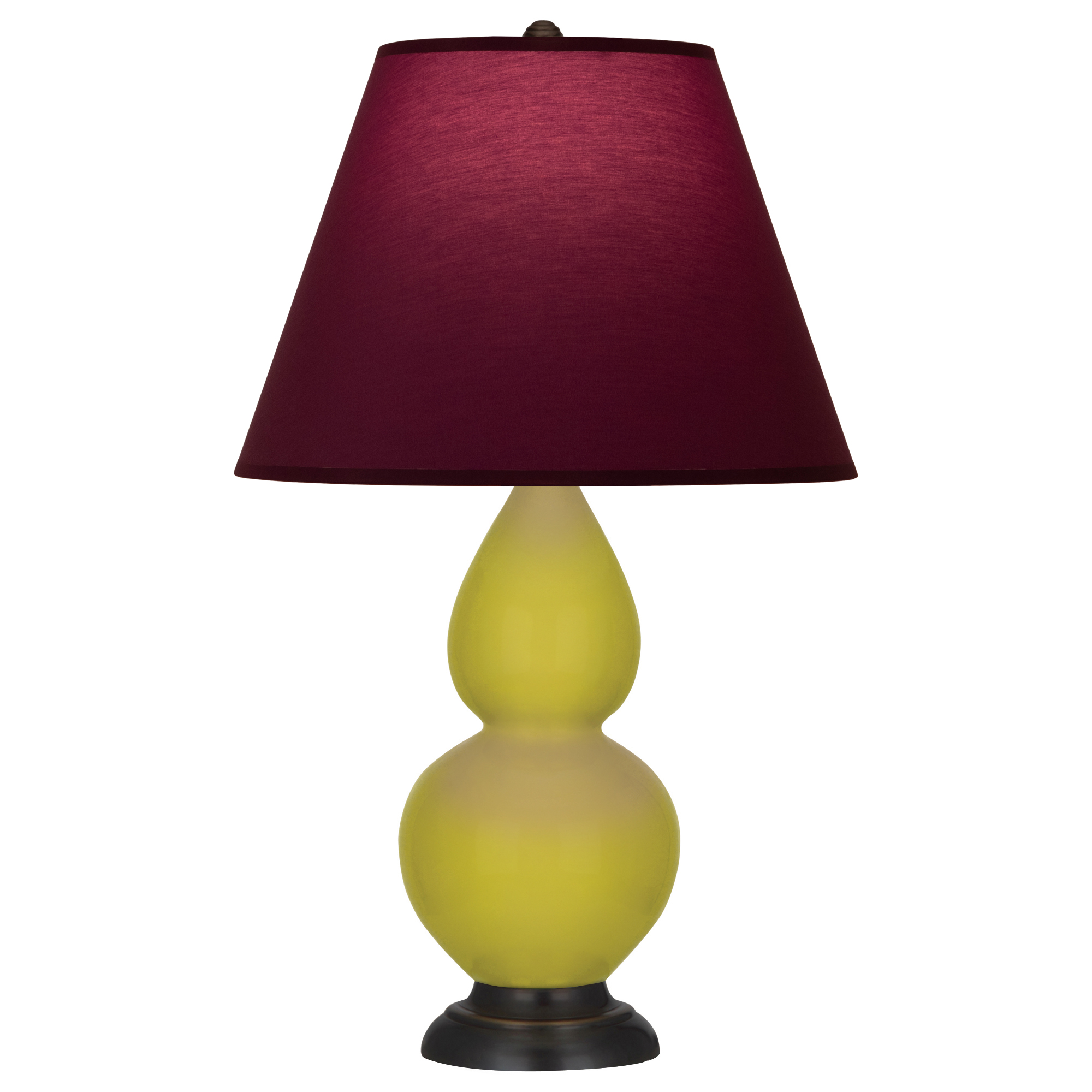 Citron Glazed Ceramic With Deep Patina Bronze Finished Accents Small Double Gourd Accent Lamp With Plum Fabric Shade with Lavender Lining - Our Double Gourd collection features a simple but gracefully curving silhouette. Available in a wide array of vibrant colors and several different base finishes.