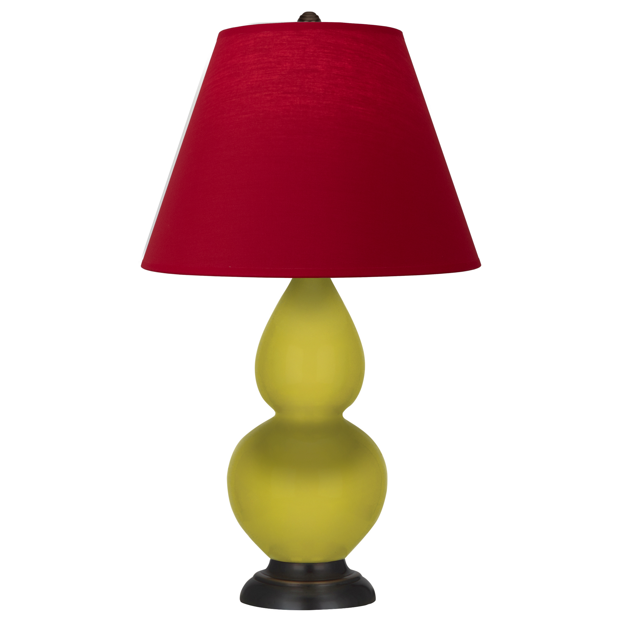 Citron Glazed Ceramic With Deep Patina Bronze Finished Accents Small Double Gourd Accent Lamp With Rose Red w/ Ink Lining Fabric Shade - Our Double Gourd collection features a simple but gracefully curving silhouette. Available in a wide array of vibrant colors and several different base finishes.