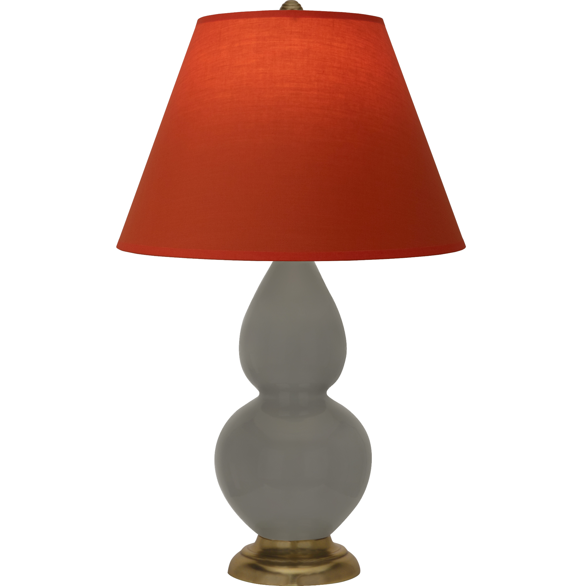 Ash Glazed Ceramic With Antique Natural Brass Finished Accents With Tangerine w/ Taupe Lining Fabric Shade - Our Double Gourd collection features a simple but gracefully curving silhouette. Available in a wide array of vibrant colors and several different base finishes.