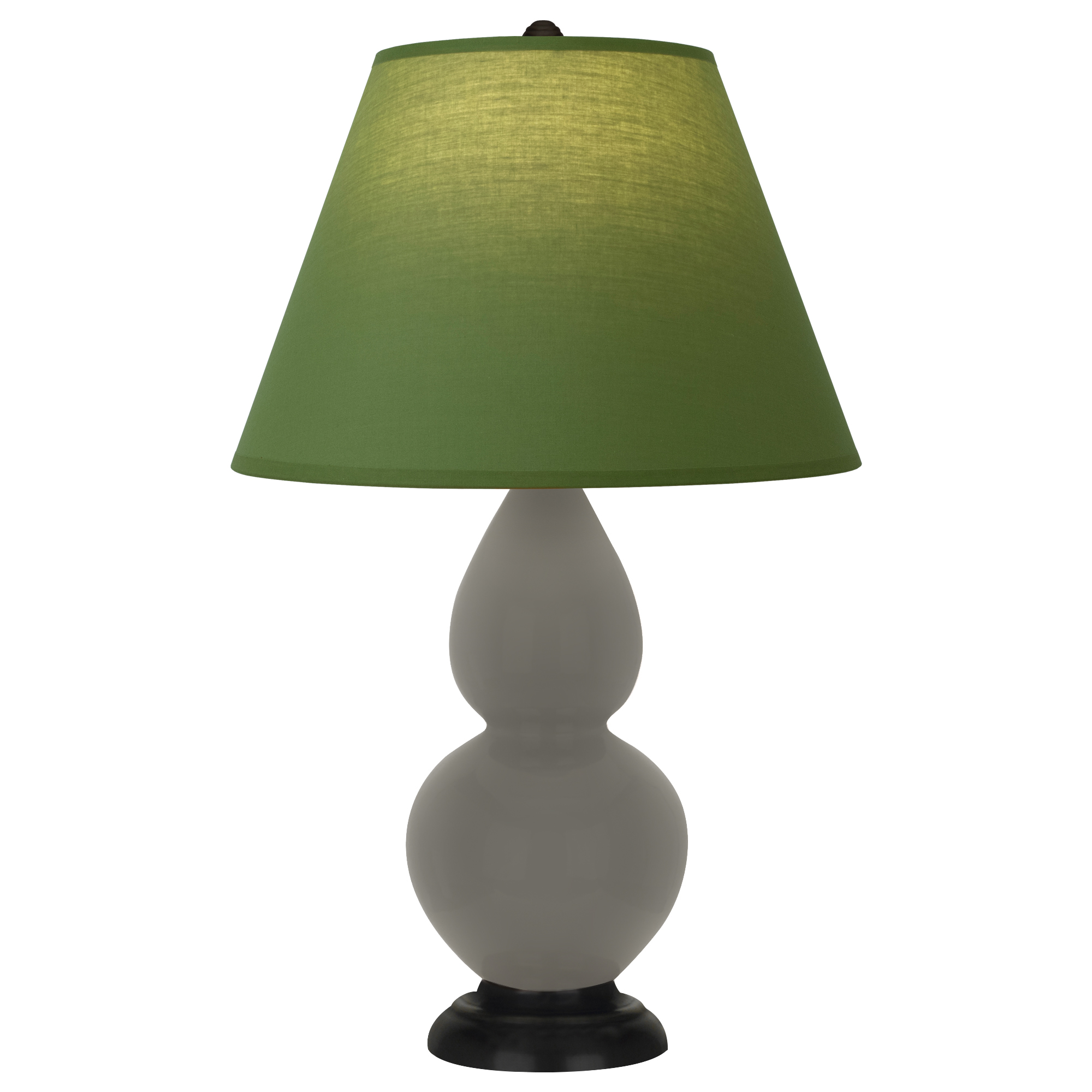 Ash Glazed Ceramic With Deep Patina Bronze Finished Accents Small Double Gourd Accent Lamp With Tea Green Fabric Shade with Taupe Lining - Our Double Gourd collection features a simple but gracefully curving silhouette. Available in a wide array of vibrant colors and several different base finishes.