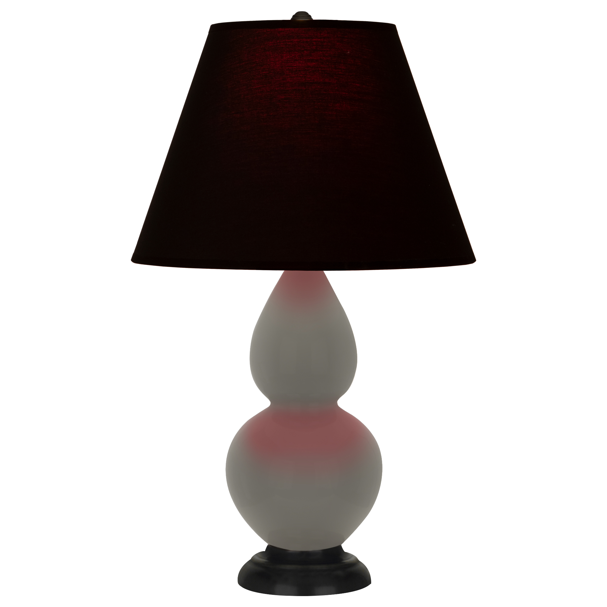 Ash Glazed Ceramic With Deep Patina Bronze Finished Accents Small Double Gourd Accent Lamp With Ink Fabric Shade with Rose Red Lining - Our Double Gourd collection features a simple but gracefully curving silhouette. Available in a wide array of vibrant colors and several different base finishes.
