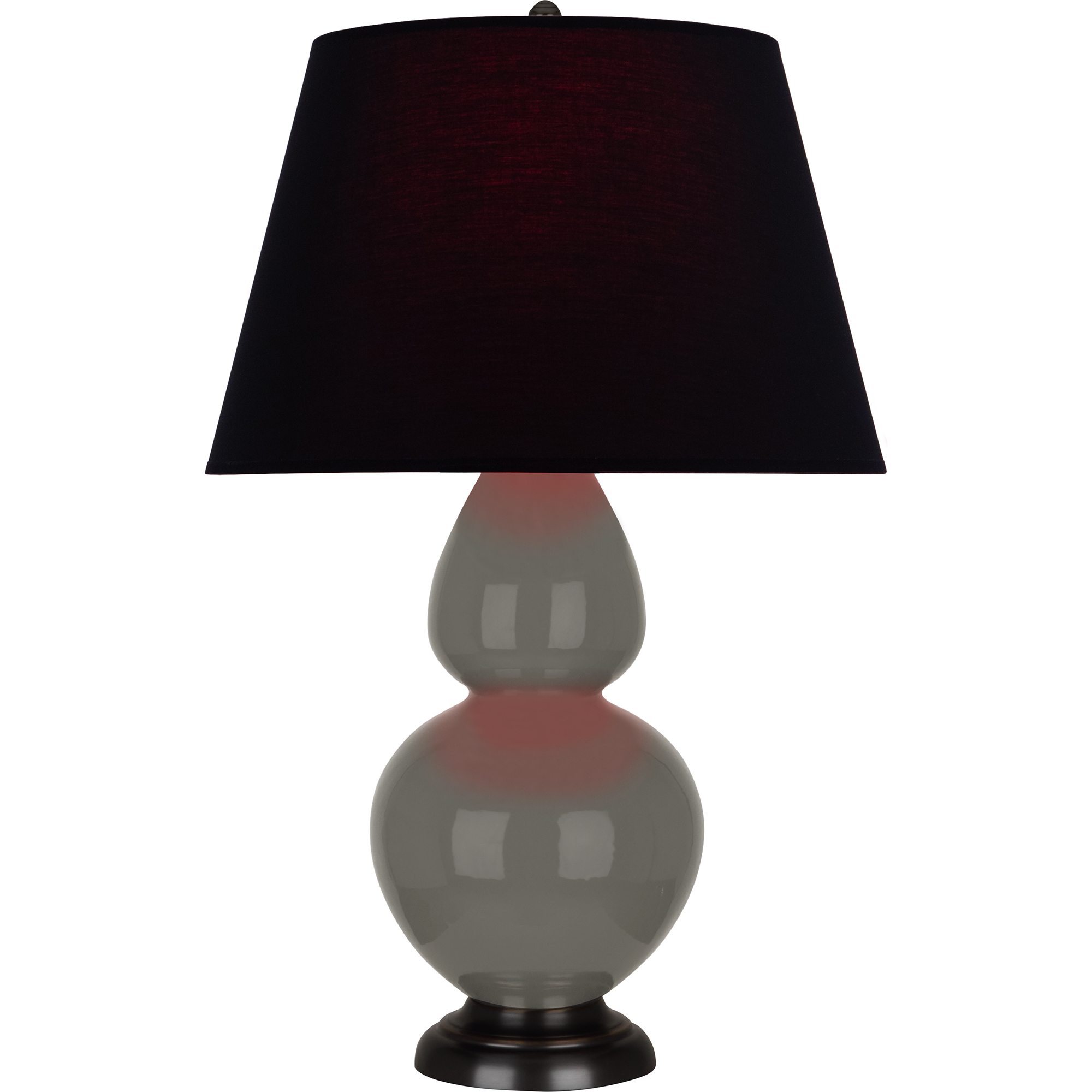 Ash Glazed Ceramic With Deep Patina Bronze Finished Accents Double Gourd Table Lamp With Ink Fabric Shade with Rose Red Lining - Our Double Gourd collection features a simple but gracefully curving silhouette. Available in a wide array of vibrant colors and several different base finishes.