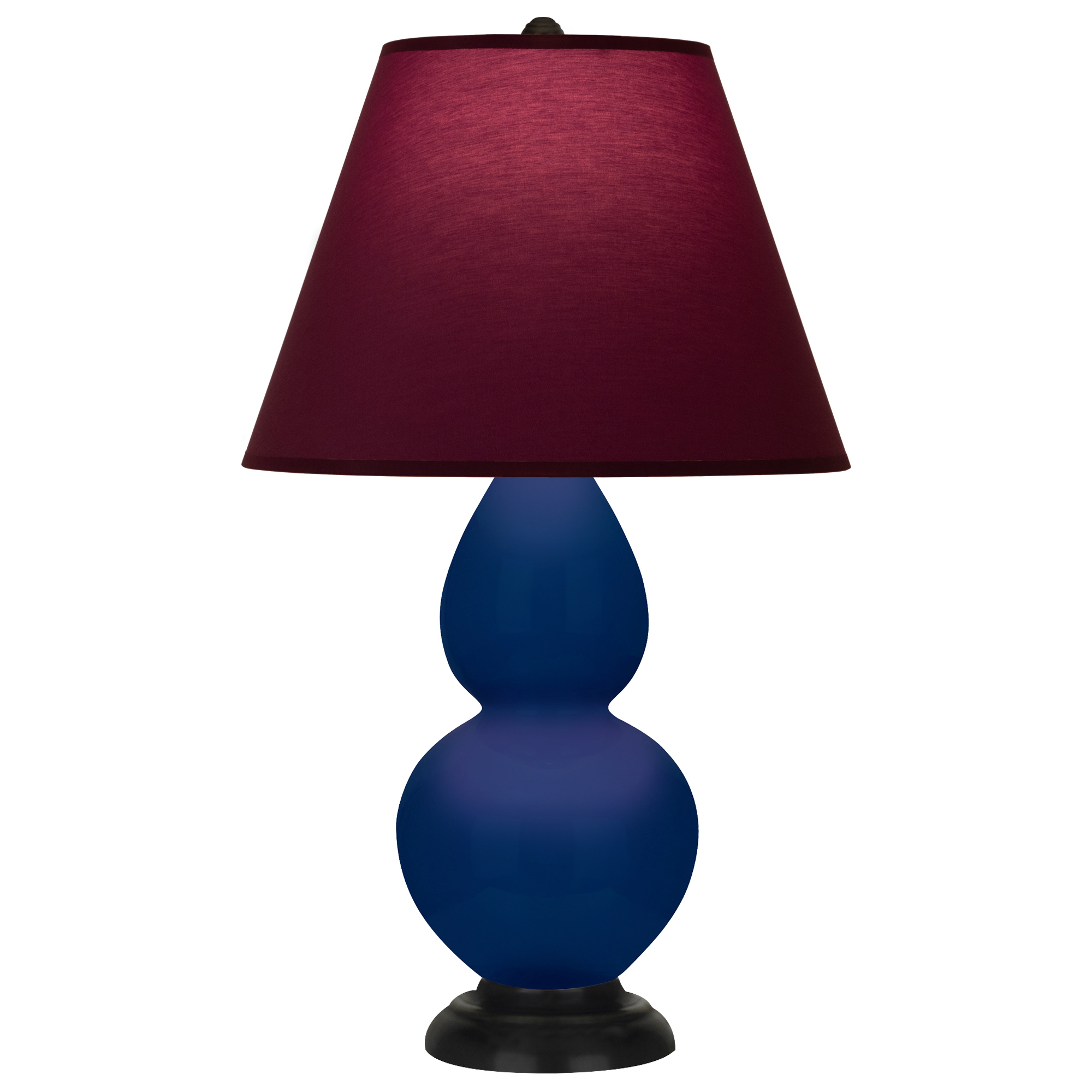 Cobalt Glazed Ceramic With Deep Patina Bronze Finished Accents Small Double Gourd Accent Lamp With Plum Fabric Shade with Lavender Lining - Our Double Gourd collection features a simple but gracefully curving silhouette. Available in a wide array of vibrant colors and several different base finishes.