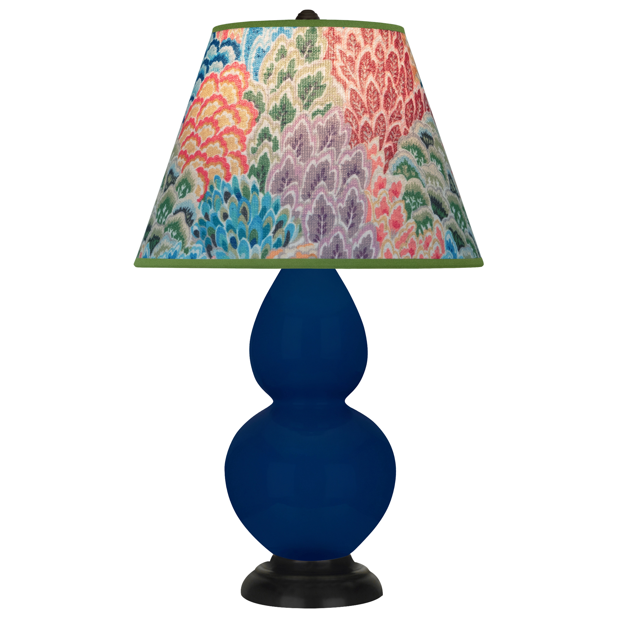 Cobalt Glazed Ceramic With Deep Patina Bronze Finished Accents Small Double Gourd Accent Lamp With Spring Floral Fabric Shade - Our Double Gourd collection features a simple but gracefully curving silhouette. Available in a wide array of vibrant colors and several different base finishes.