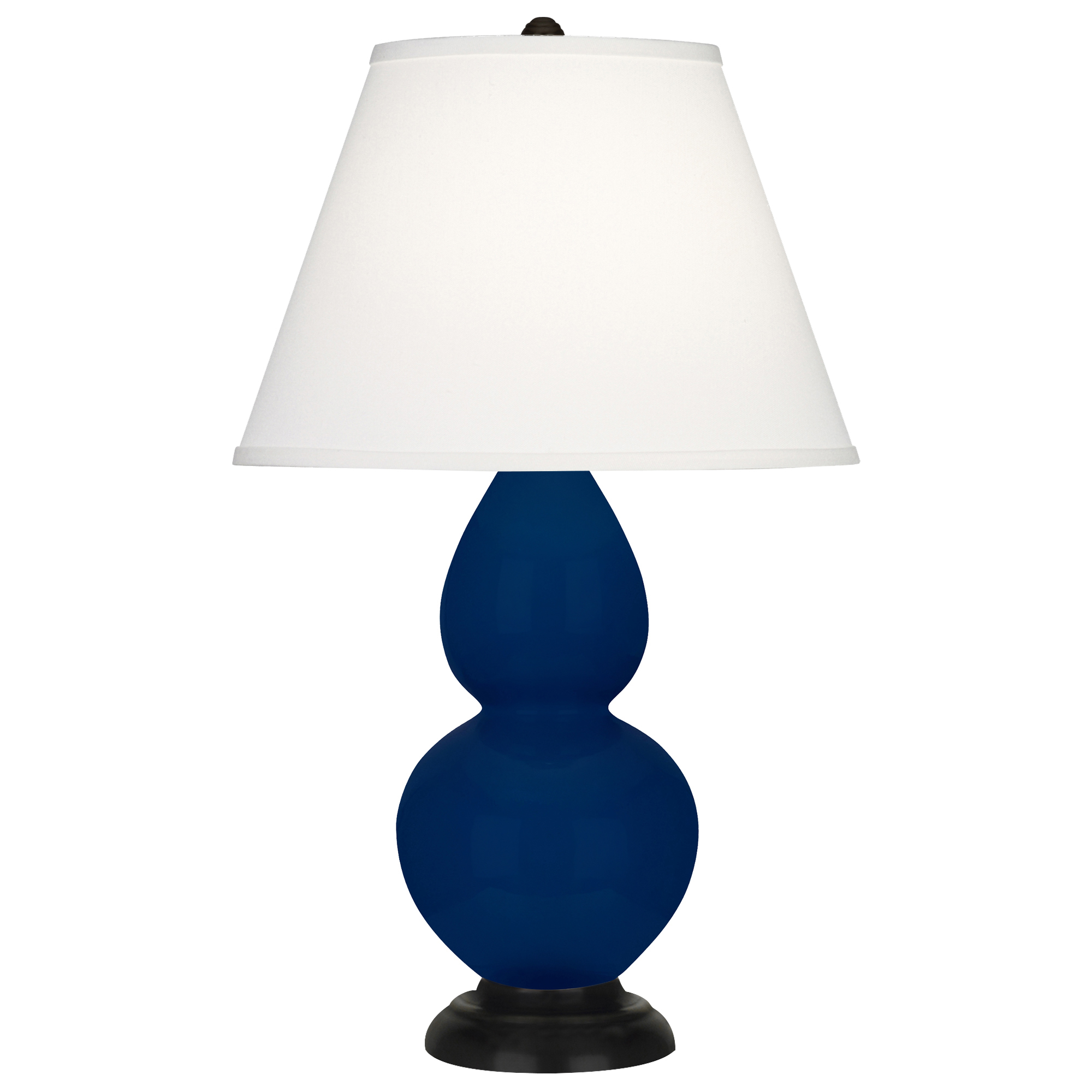 Cobalt Glazed Ceramic With Deep Patina Bronze Finished Accents Small Double Gourd Accent Lamp With Pearl Dupioni Fabric Shade - Our Double Gourd collection features a simple but gracefully curving silhouette. Available in a wide array of vibrant colors and several different base finishes.