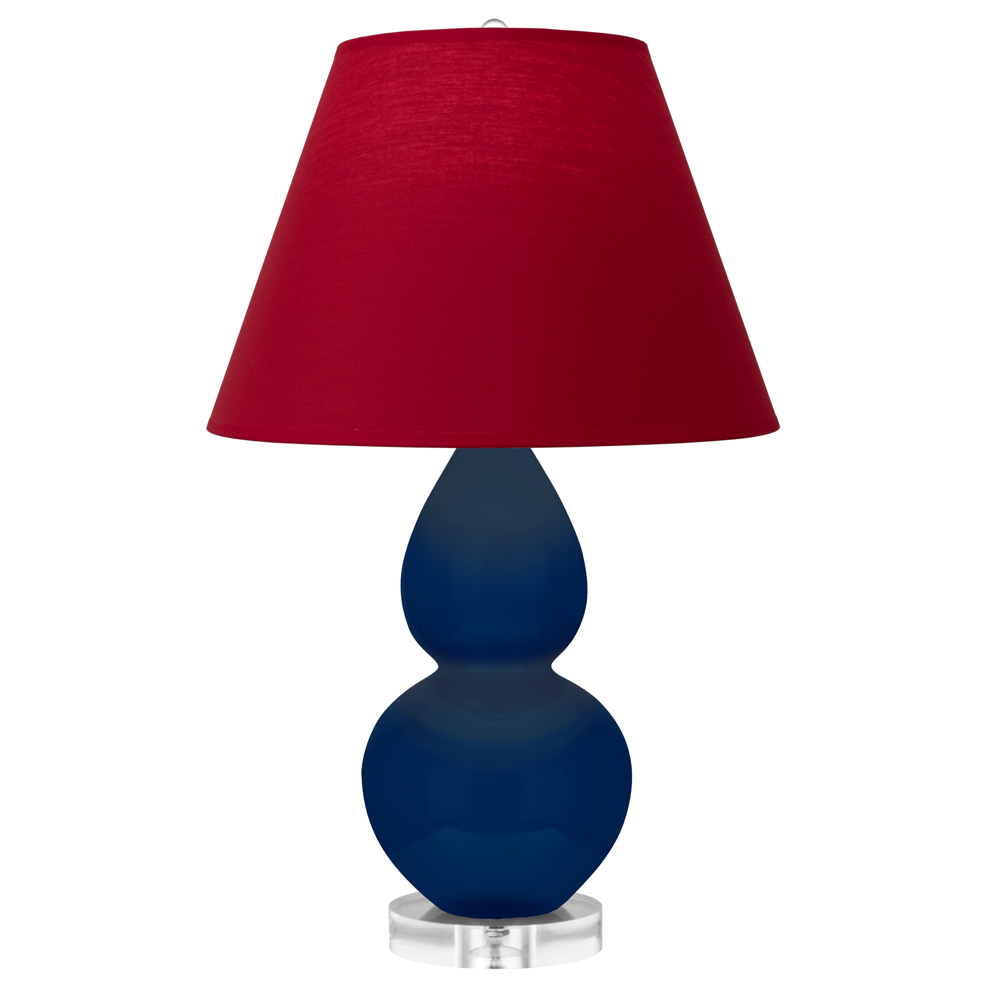 Cobalt Glazed Ceramic With Lucite Base With Rose Red w/ Ink Lining Fabric Shade - Our Double Gourd collection features a simple but gracefully curving silhouette. Available in a wide array of vibrant colors and several different base finishes.