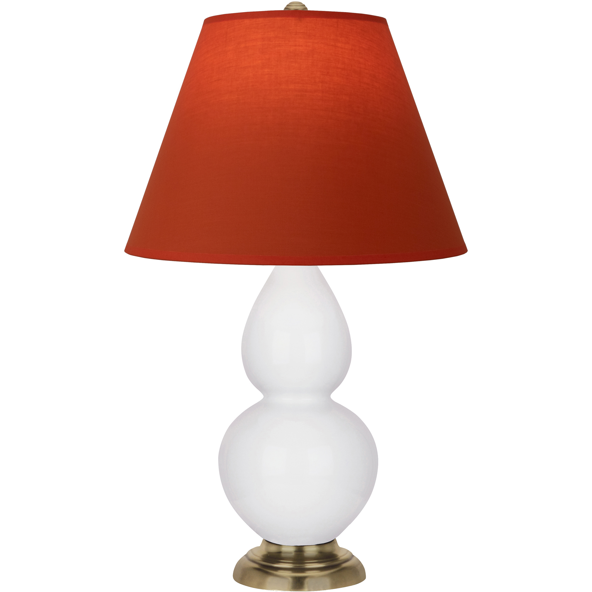 Daisy Glazed Ceramic With Antique Natural Brass Finished Accents With Tangerine w/ Taupe Lining Fabric Shade - Our Double Gourd collection features a simple but gracefully curving silhouette. Available in a wide array of vibrant colors and several different base finishes.