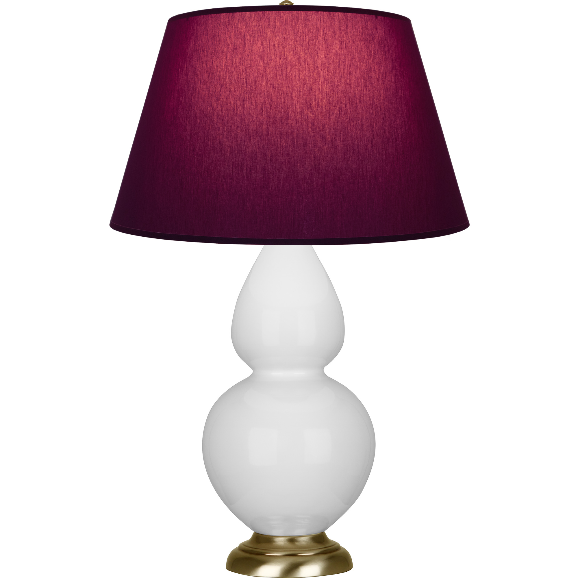 Daisy Glazed Ceramic With Antique Natural Brass Finished Accents Double Gourd Table Lamp With Plum Fabric Shade with Lavender Lining - Our Double Gourd collection features a simple but gracefully curving silhouette. Available in a wide array of vibrant colors and several different base finishes.