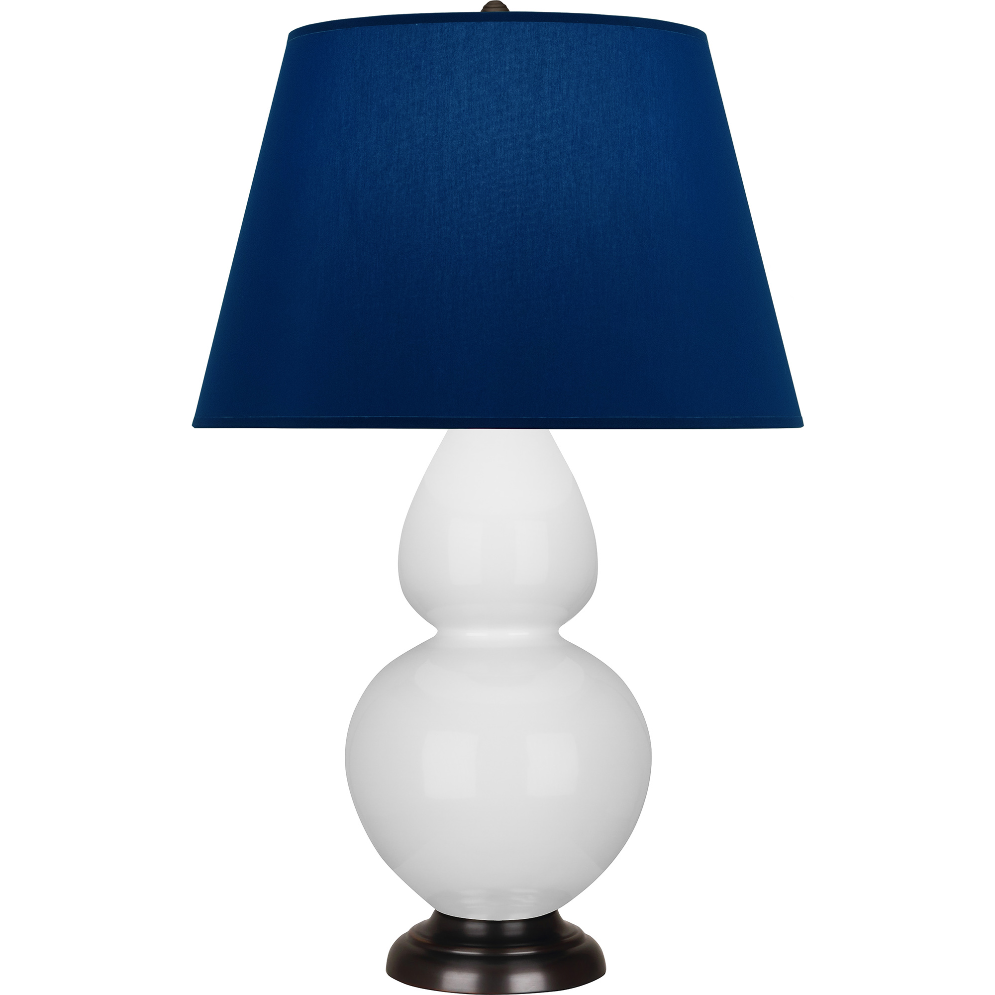 Daisy Glazed Ceramic With Deep Patina Bronze Finished Accents Double Gourd Table Lamp With Navy Fabric Shade with Gray Lining - Our Double Gourd collection features a simple but gracefully curving silhouette. Available in a wide array of vibrant colors and several different base finishes.
