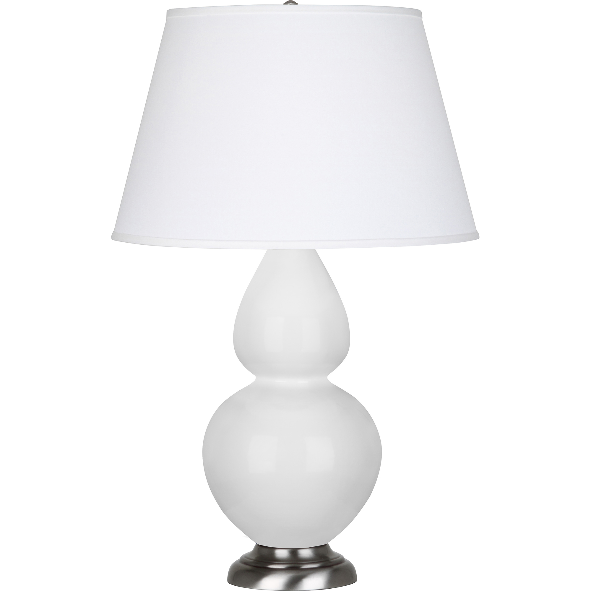 Daisy Glazed Ceramic With Antique Silver Finished Accents Double Gourd Table Lamp With Pearl Dupioni Fabric Shade - Our Double Gourd collection features a simple but gracefully curving silhouette. Available in a wide array of vibrant colors and several different base finishes.