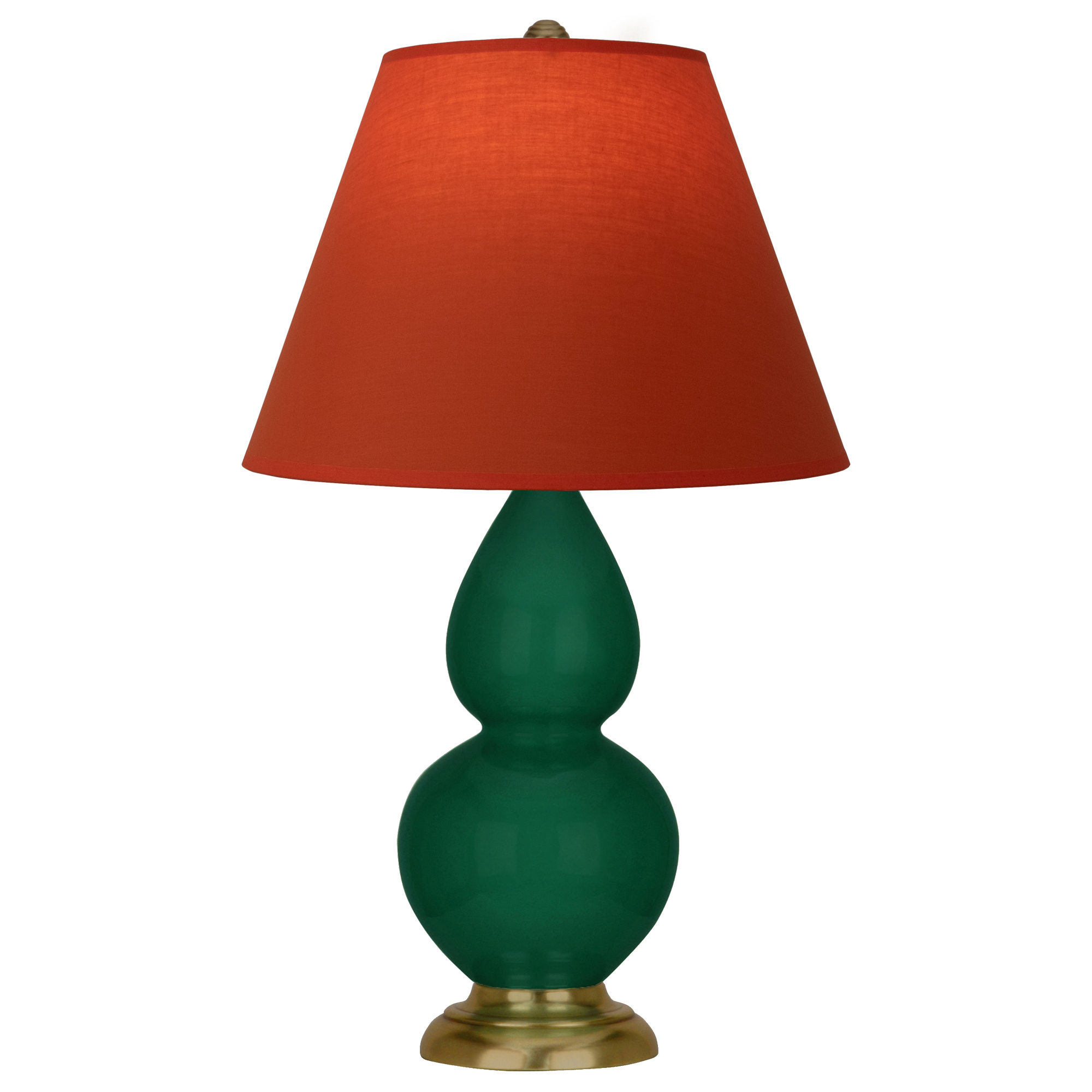 Jungle Glazed Ceramic With Antique Natural Brass Finished Accents With Tangerine w/ Taupe Lining Fabric Shade - Our Double Gourd collection features a simple but gracefully curving silhouette. Available in a wide array of vibrant colors and several different base finishes.