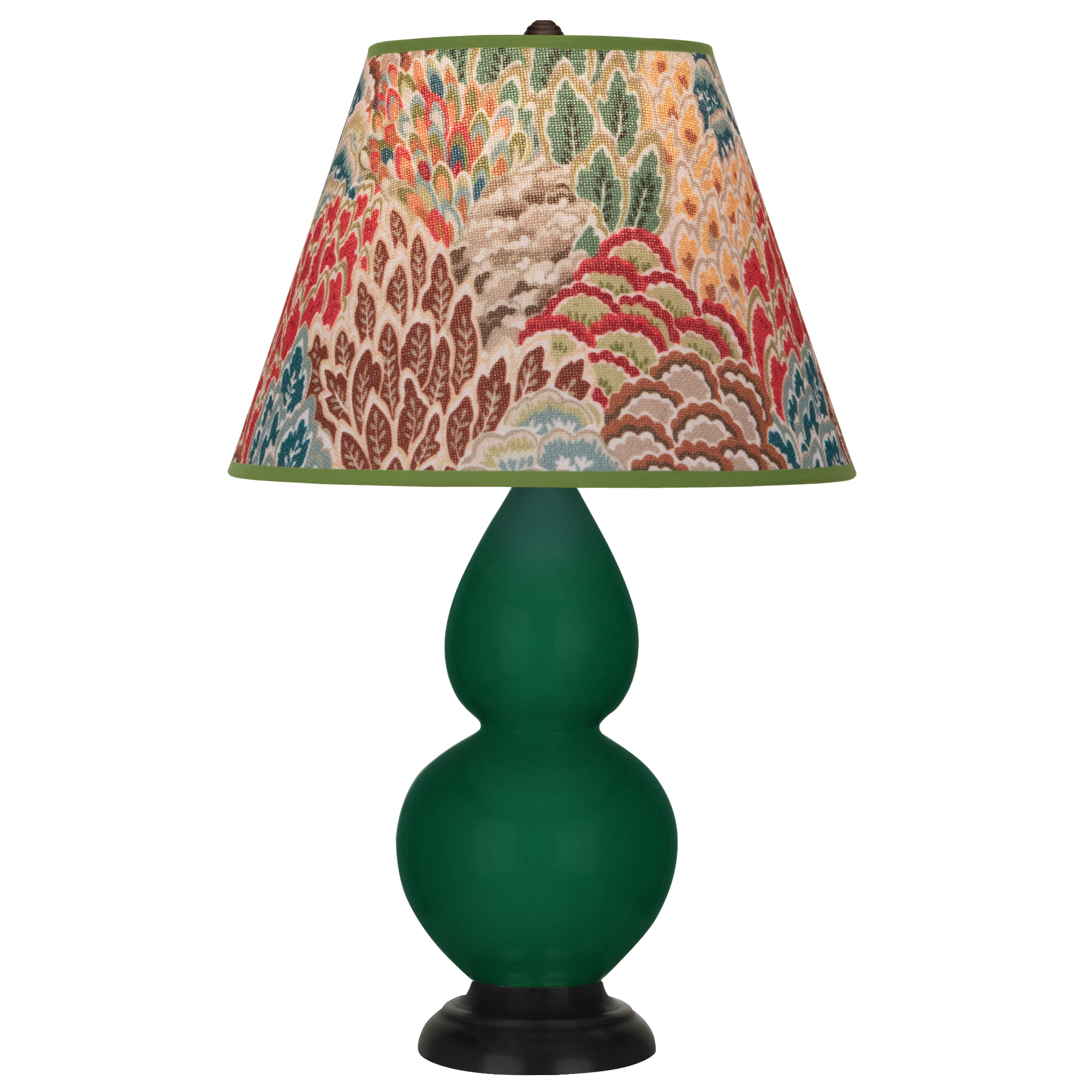 Jungle Glazed Ceramic With Deep Patina Bronze Finished Accents Small Double Gourd Accent Lamp With Fall Floral Fabric Shade - Our Double Gourd collection features a simple but gracefully curving silhouette. Available in a wide array of vibrant colors and several different base finishes.