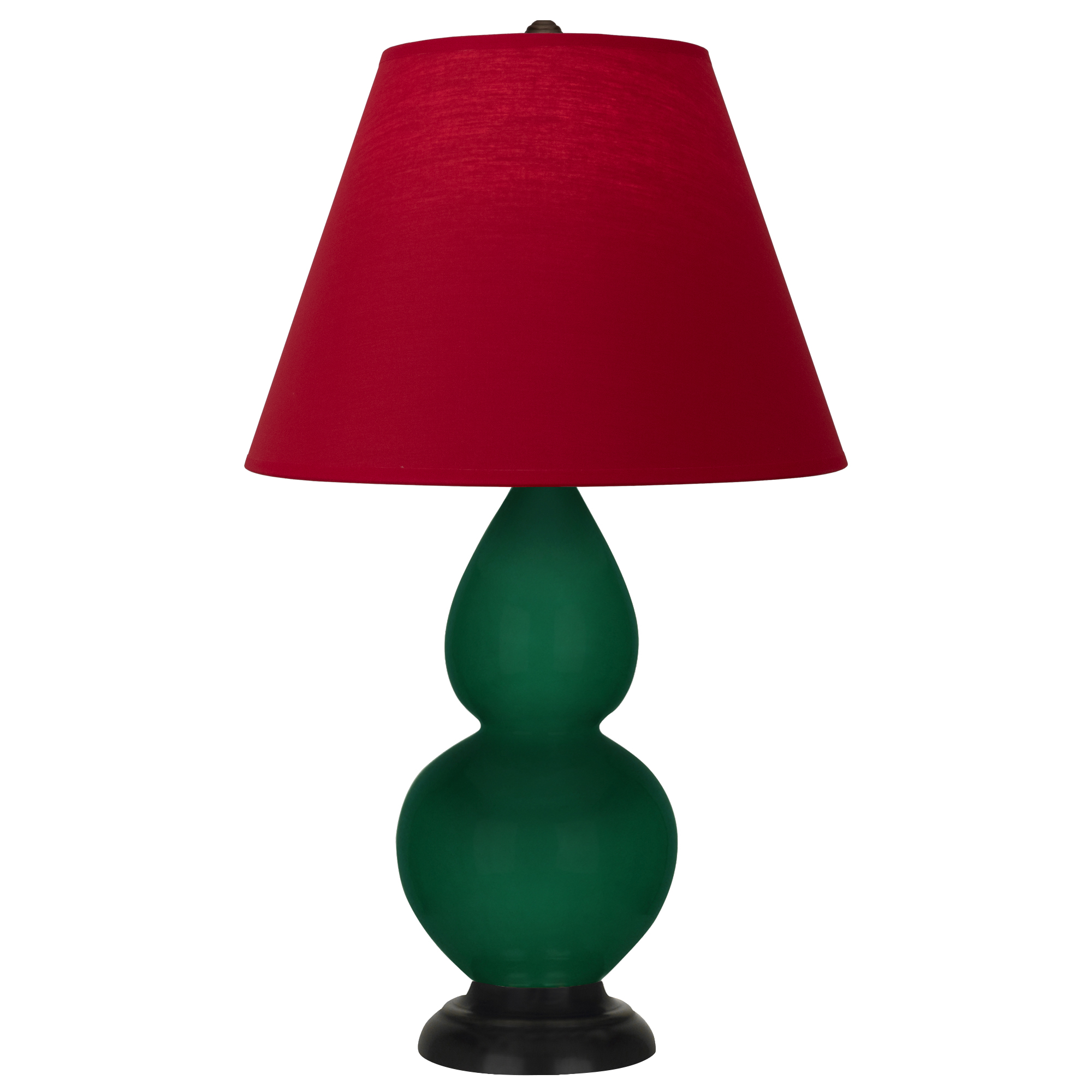 Jungle Glazed Ceramic With Deep Patina Bronze Finished Accents Small Double Gourd Accent Lamp With Rose Red w/ Ink Lining Fabric Shade - Our Double Gourd collection features a simple but gracefully curving silhouette. Available in a wide array of vibrant colors and several different base finishes.