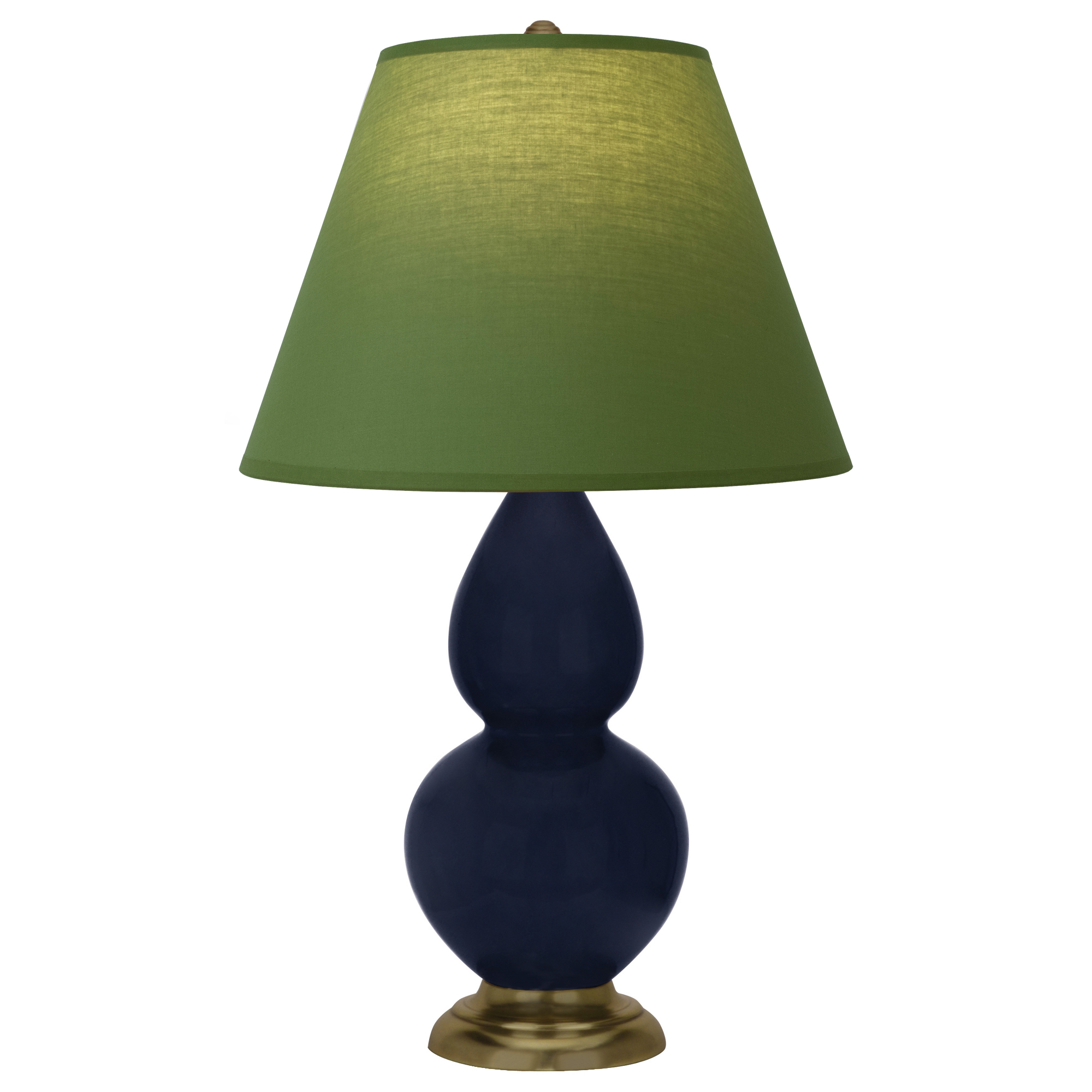 Midnight Blue Glazed Ceramic With Antique Natural Brass Finished Accents Double Gourd Table Lamp With Tea Green Fabric Shade with Taupe Lining - Our Double Gourd collection features a simple but gracefully curving silhouette. Available in a wide array of vibrant colors and several different base finishes.