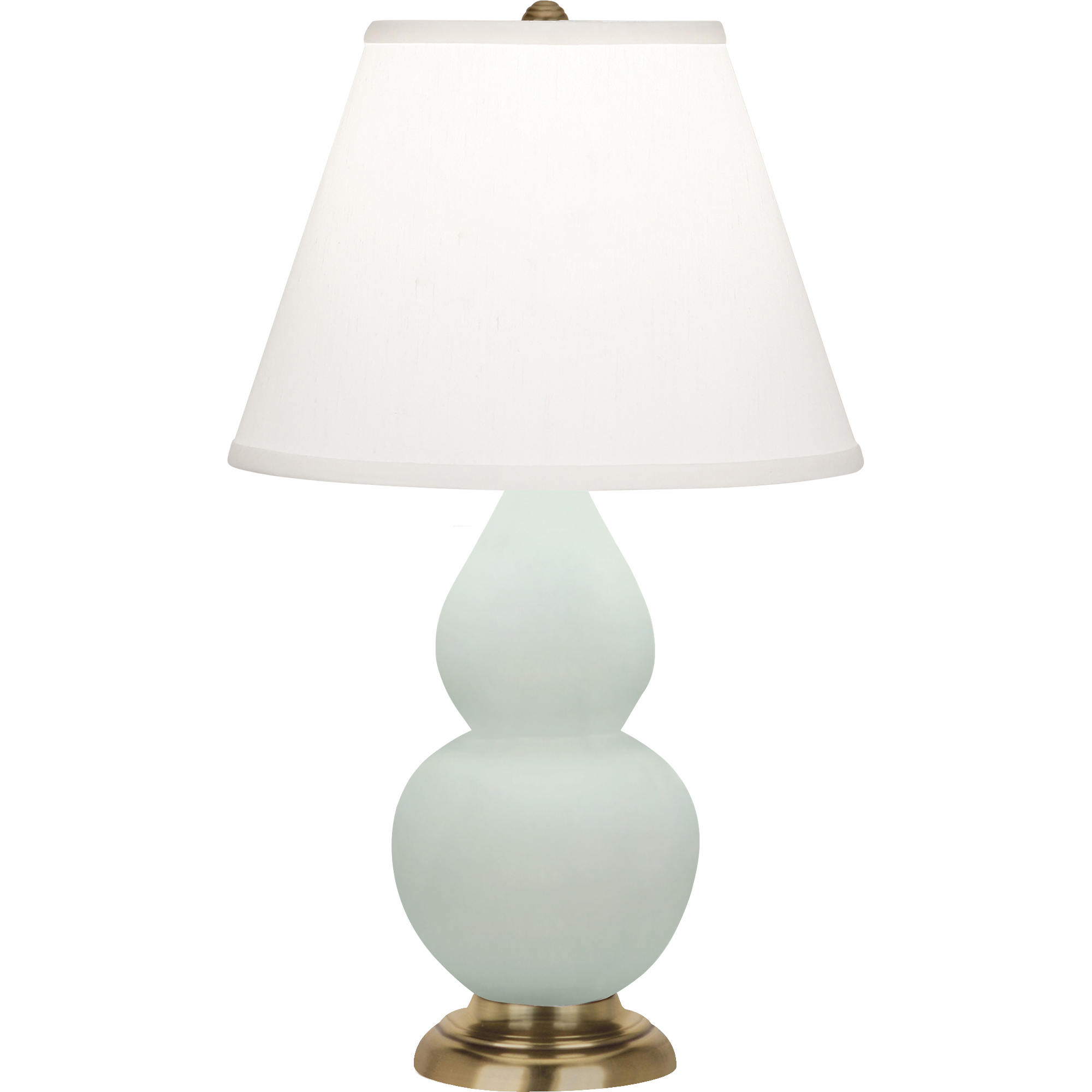 Matte Celadon Glazed Ceramic Small Double Gourd Accent Lamp With Pearl Dupioni Fabric Shade - Our Double Gourd collection features a simple but gracefully curving silhouette. Available in a wide array of vibrant colors and several different base finishes.