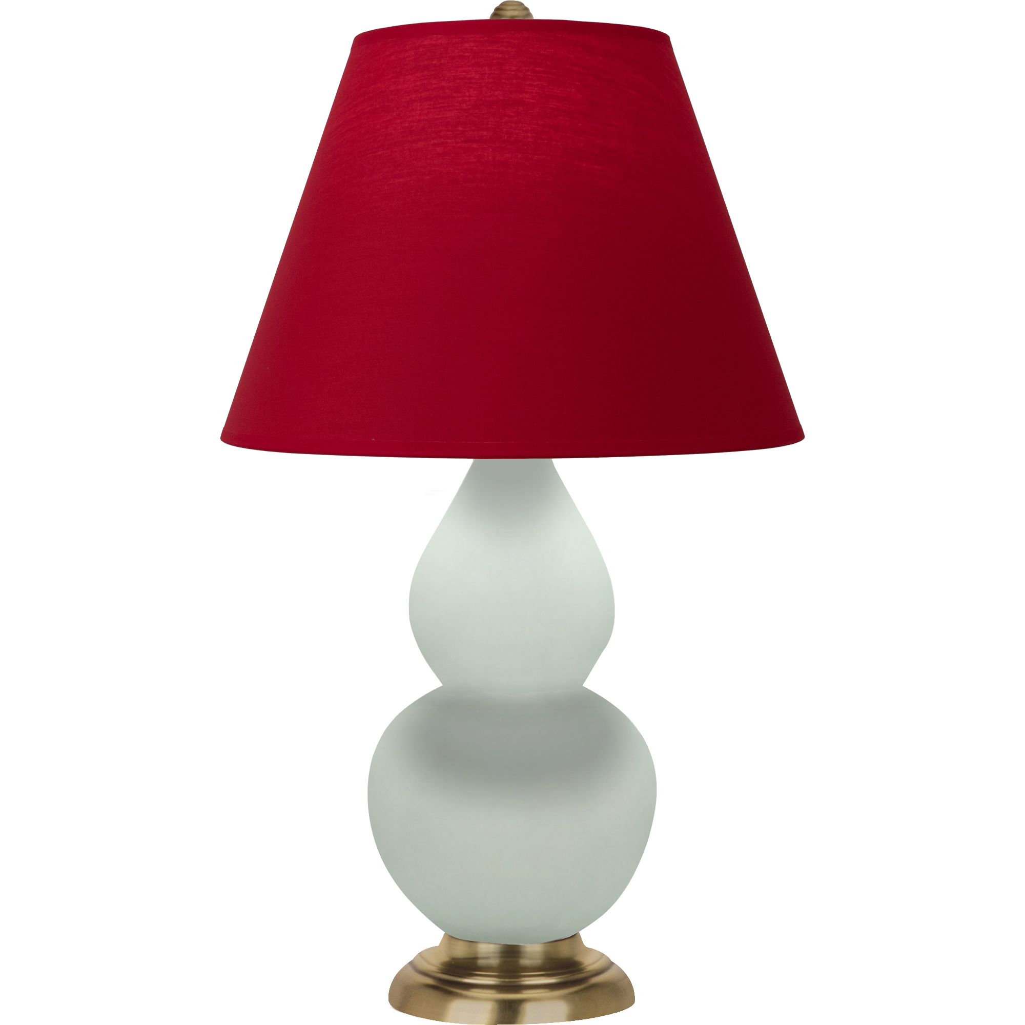 Matte Celadon Glazed Ceramic With Antique Natural Brass Finished Accents Small Double Gourd Accent Lamp With Rose Red w/ Ink Lining Fabric Shade - Our Double Gourd collection features a simple but gracefully curving silhouette. Available in a wide array of vibrant colors and several different base finishes.