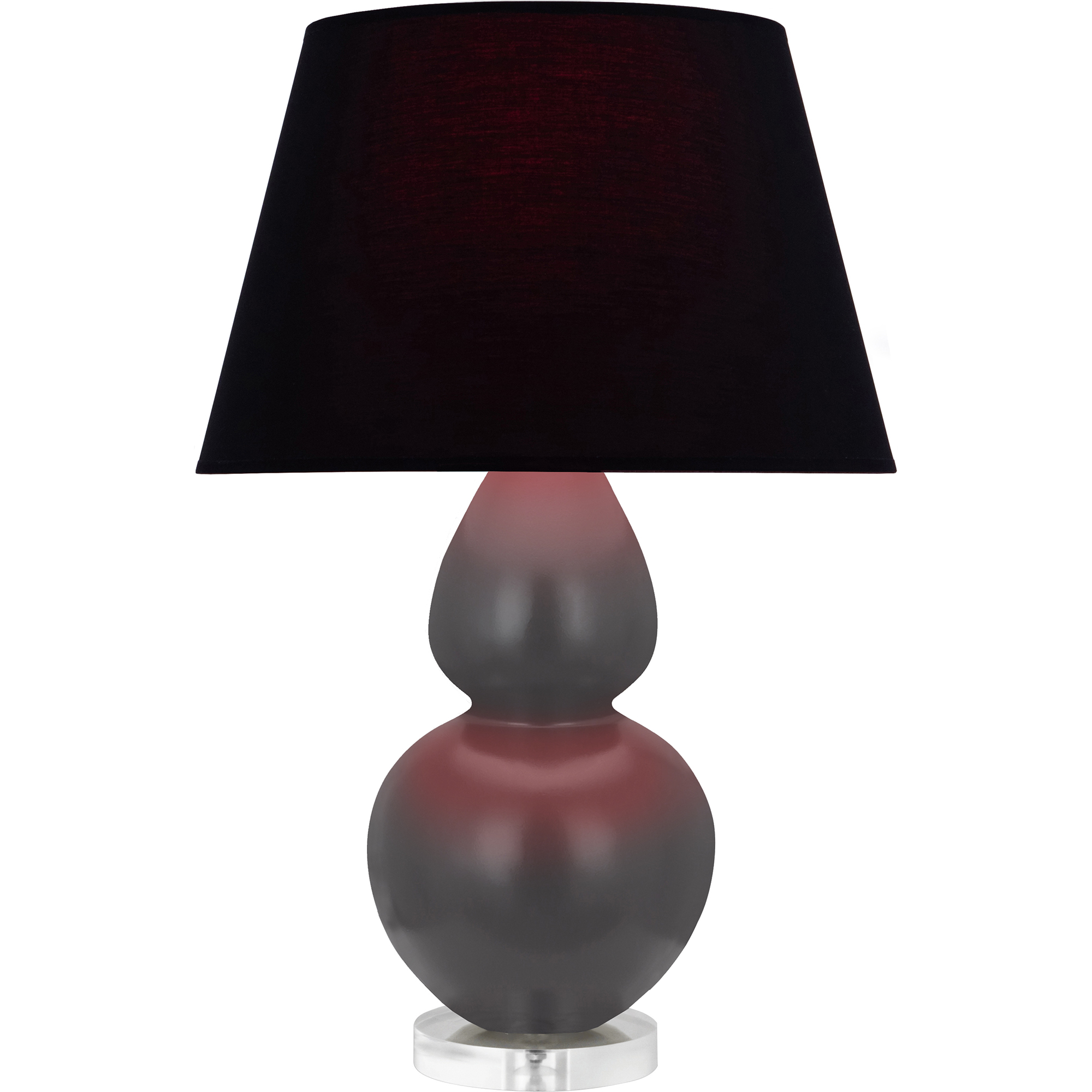 Matte Ash Glazed Ceramic With Lucite Base Double Gourd Table Lamp With Ink Black Fabric Shade with Rose Red Lining - Our Double Gourd collection features a simple but gracefully curving silhouette. Available in a wide array of vibrant colors and several different base finishes.